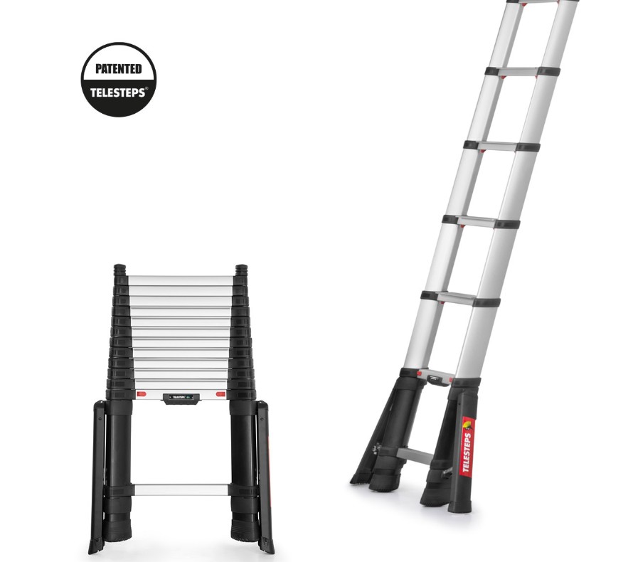 Solid og kompakt teleskopstige med unikt trekantet design. Stigen er utstyrt med en sikker trinnlåsfunksjon som gjør at man kan låse hvert trinn på den høyden man ønsker. Trinnene er 8 cm dype, riflede og skråstilte for bedre sikkerhet, komfort og betjening. Stigen er også utstyrt med toppstøtte med en gummikloss for bedre anlegg mot vegg.