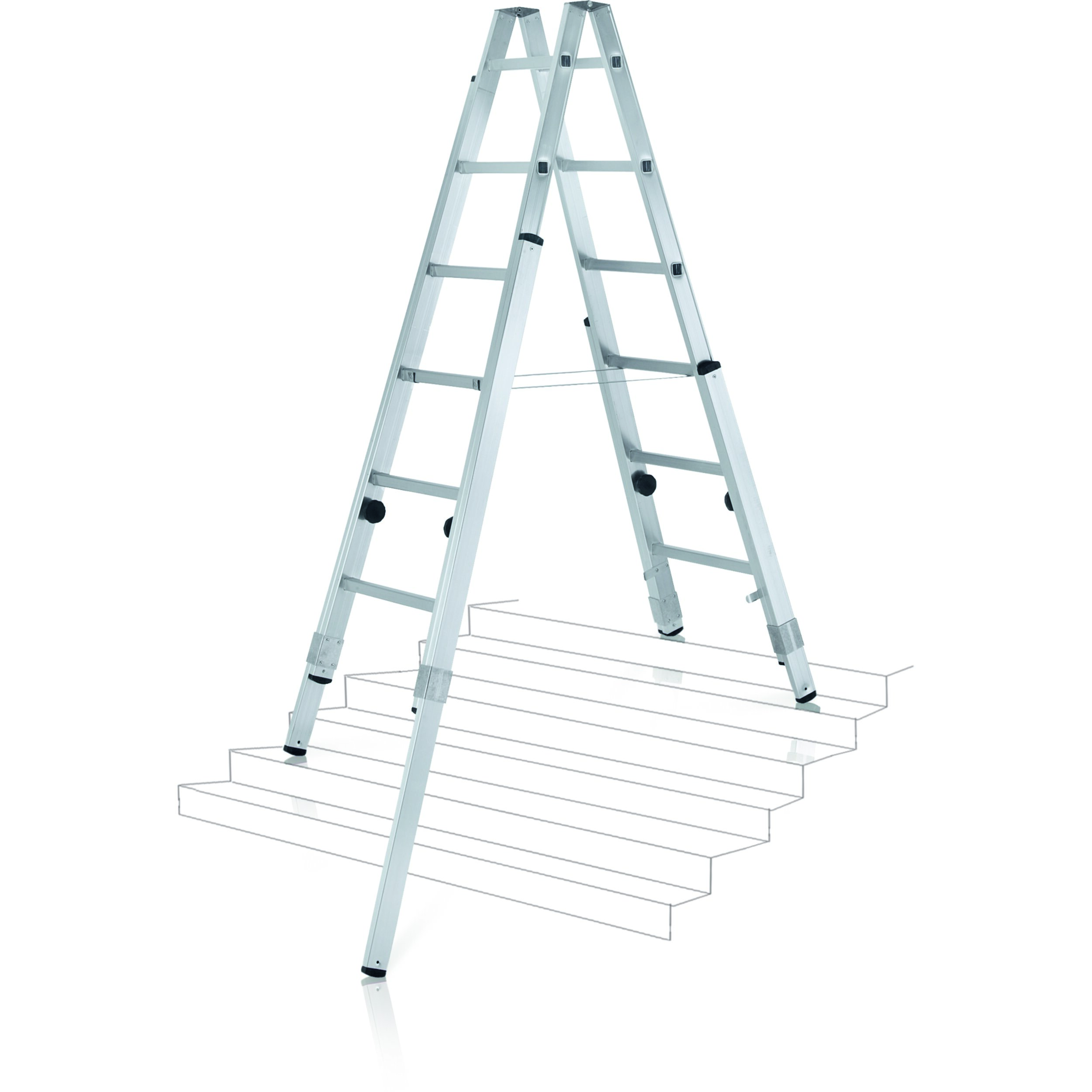 Den optimale stigen i trapper og ved ujevnt underlag. Spesialstige med 4 justerbare støtteben.